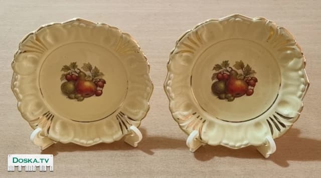винтажные фарфоровые тарелки с фруктовым декором K&A Krautheim Selb Bavaria из Германии. Период производства: 1922-1945 год.