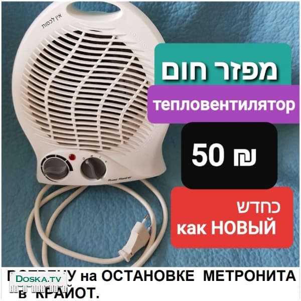 Обогреватель. Тепловентилятор. Состояние : как новый. Цена = 50 ש. Встречу на остановке метронита в Крайот.