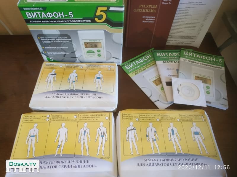 Аппарат виброакустического воздействия Витафон-5 для оздоровления организма с помощью проверенной десятилетиями методики. В комплект с аппаратом входят матрац ОРПО для общеоздоровляющего воздействия, комплект манжет для отдельных органов, инструкции.