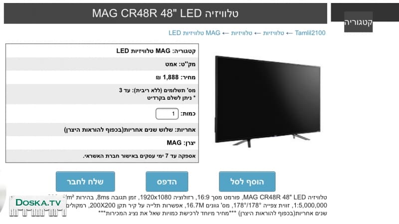 Продам отличный телевизор со smart tv MAG 48 " full hd в использовании 1.5 месяца, есть гарантия документы коробка чек продаю в связи с переездом.