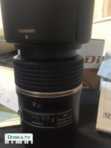 Тамрон для канон, макро объектив. полный комплект. Антикраш чехол, бленда,