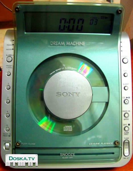 Проигрыватель CD с будильником, радиоприёмником. Может будить мелодией с диска