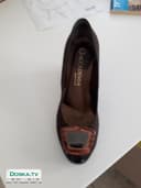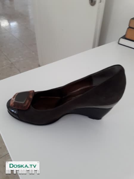 Замшевые туфли на сплошной платформе с перламутровой вставкой на каблуке. Размер 38.