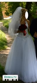 Пышное белое платье, корсет изумительно переливается, в корсете внутренние чашечки которые шикарно держат грудь, шнуровка сзади дает возможность подогнать размер под вас, пышность платья на фото без кругов и подъюбника (на ващ вкус вы можете сделать его более пышным. Все подробности по тел 0525528100 0526737990