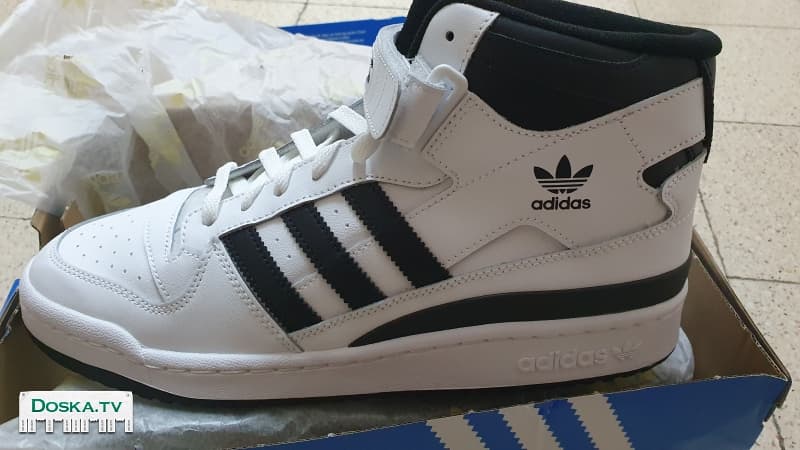 Размер 44, белые с чёрным, высокие, шнуровка и липучка.