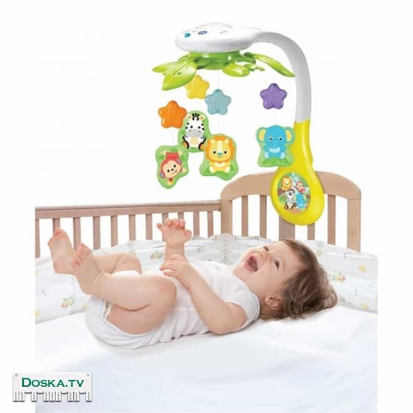 Мобиль с интерактивным светом от WinFun BALIBABY Мобиль от Win Fan с подсветкой, приятными мелодиями и 3 улыбающимися куклами, которые двигаются и активизируют малыша. Мобиль имеет 3 разные мелодии