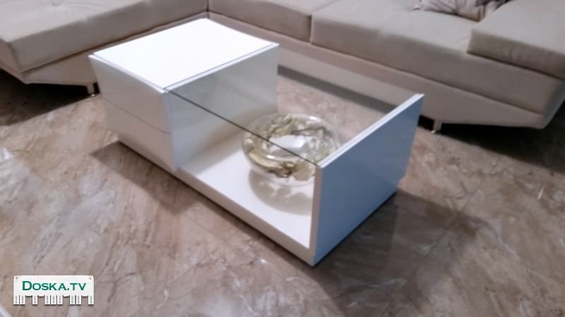 Столик для салона. С витриной из стекла. Два выдвижных ящика