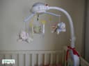 Музыкальная подвеска для кроватки. Регулируется громкость, мелодии; есть подсветка, как на картинке (светящийся рисунок очень красиво смотрится на потолке). Включать-выключать можно при помощи пульта. В хорошем состоянии.
