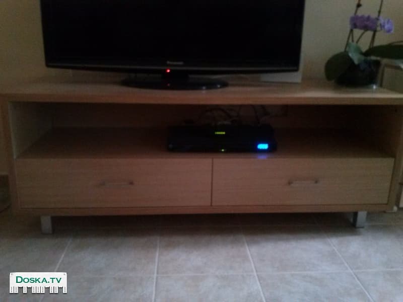 Тумба для телевизора, размер 147х56, светло бежевый цвет, 2 ящика в нижней части.