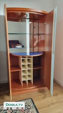 Комлект мебели для салона. Состоит из бара и тумбы под телевизор . В хорошем состоянии. в баре: стеклянные полки, встроенное зеркало, спец. место для 12 бутылок вина, открывающийся столик для бокалов. тумба под телевизор: стеклянные полки, встроенное зеркало, двигающаяся стеклянная дверь. размеры: бар: длина - 75 см, глубина - 50 см, высота - 1.47м. тумба под телевизор: длина - 1.51 м, глубина - 60 см, высота - 75 см.