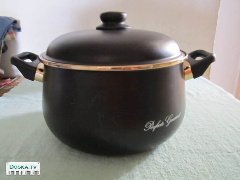 Кастрюля PERFECTO GOURMET. Емкость -7 литров. Диаметр-26 см. Высота-15 см. Новая,не пользованная. Производства 2000 х годов. Есть небольшие следы времени и хранения. Общее состоянте-отличное. Цена:50 шек Спасибо.
