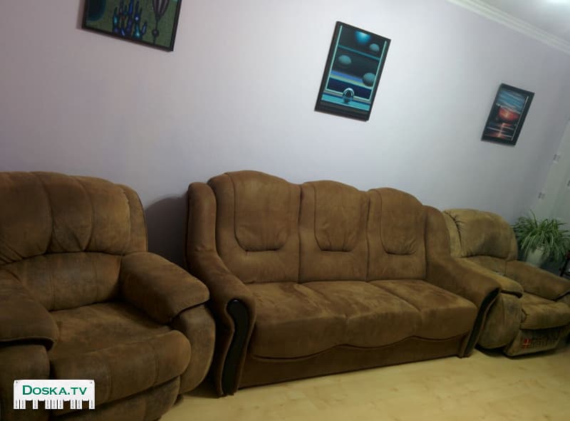Салон 3+1+1обивка-ткань, диван раскладывается в кровать, одно кресло телевизионное.