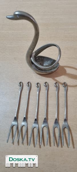 Набор посеребрянных вилок с подставкой в виде лебедя