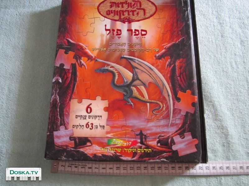 Большая книга пазлов "История Драконов" на Иврите. 12 листов,6 пазлов. Обложка имеет небольшие следы использования и времени. Листы и пазлы в отличном состоянии,как новые. В 6 драконе отсутствует 1 угловой незначительный пазл. Пожалуйста,см.фото 4. Цена-40 шек. Спасибо