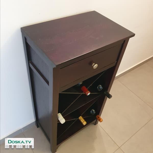 Бар-стеллаж для вина, чисто деревяный тёмно-коричневый с свыдвижным ящиком для сопутствующих аксессуаров,50х32х95 см