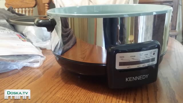 Большая электрическая кастрюля (по принципу мультиварки: программ нет, но выставляется температура). Вставная чаша с тефлоновым покрытием.