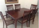 Продам стильный обеденный стол +6 больших стульев. Б/У • Размеры: 153x106 см, раздвигается до 245 см (2 вставки по 46 см каждая). привезён из США. подходит для большой семьи Цена: 1400 ₪ весь набор со стульями Бат ям