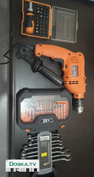 ударную дрель с набором сверел, состояние новой.
