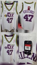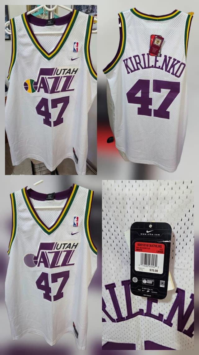 Спортив джерси команды НБА «Юта Джаз» с номером 47, под которым на протяжении 10 сезонов (2001–2011) выступал российский баскетболист Андрей Кириленко. Информация об игроке и джерси Легендарное прозвище: Номер 47 в сочетании с инициалами игрока (A.K.) породил одно из самых известных прозвищ в истории НБА — «AK-47». Дизайн: Это классическая белая домашняя форма с фиолетовыми, желтыми и зелеными элементами. На груди расположен логотип команды в стиле «музыкальной ноты», который использовался в разные периоды истории клуба. Статус номера: По состоянию на апрель 2026 года, номер 47 не выведен официально из обращения «Ютой Джаз», хотя в СМИ и среди болельщиков регулярно обсуждается возможность его закрепления за Кириленко. Размер Large 150 шек Кирьят Ям.