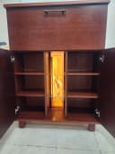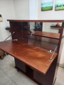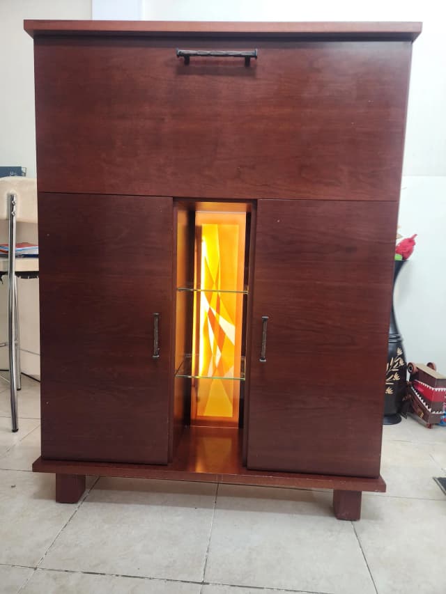 Продается качественная витрина для вина в классическом стиле. Впечатляющий, устойчивый предмет мебели, выполненный на высоком уровне. Особенности дизайна: Верхняя часть: Широкая дверца, открывающаяся вниз, которую можно использовать как удобную поверхность для приготовления напитков или сервировки. Нижняя часть: Две боковые дверцы с просторными полками для хранения. Центральная часть: Стеклянная витрина со стеклянными полками и внутренней теплой подсветкой — идеально подходит для винных бутылок, бокалов или предметов декора. Преимущества: ✔ Качественное и прочное дерево. ✔ Стеклянные полки. ✔ Освещенная ниша для экспозиции. ✔ Мебель в очень хорошем и ухоженном состоянии. ✔ Подходит для гостиной, столовой или офиса. Размеры: Ширина: 100 см Высота: 135 см Глубина: 35 см Локация: Кирьят-Бялик. Условия: Только самовывоз (доставка не предоставляется).