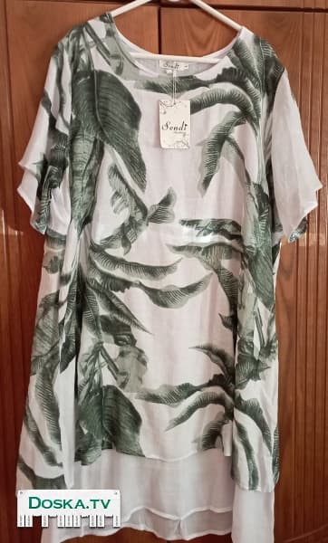 Платье красивое, легкий материал, цвет белый с зеленым свободное. Большого