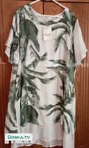 Платье красивое, легкий материал, цвет белый с зеленым свободное. Большого размера 50-52. Подходит как на каждый день, так и на выход.