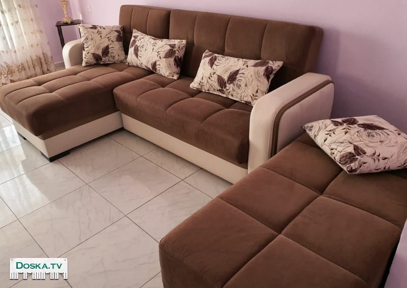 Продается угловой диван+пуф в очень хорошем состоянии! Пуфик:126/63, диван не в разложенном состоянии 227/157,в разложенном 227/173. В диване есть два места для хранения вещей!