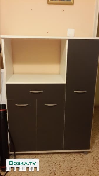 Кухонный шкаф для микроволновой печи. Содержит выдвижную тумбочку для кухонных