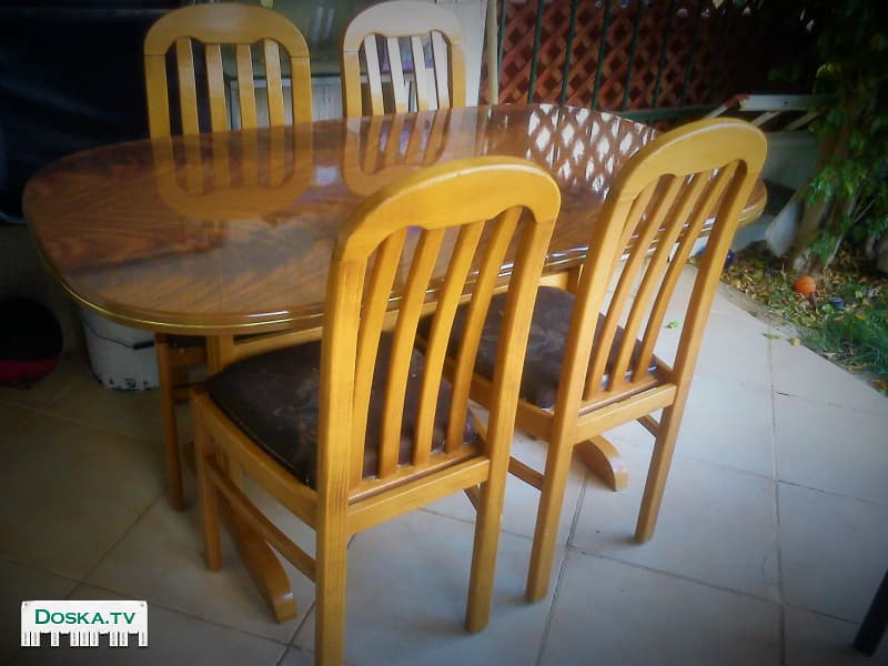 Полированный обеденный стол размером 144х84 см, раздвигается до 210 см. Бесплатно прилагаются 4 стула.