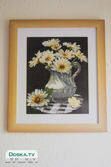 Чрезвычайная редкость для любителей прекрасного! Две изумительных картины, из которых на одной изображен натюрморт из букета ромашек в хрустальной вазе, стоящей на столике (размеры картины: высота -- 54 см, ширина -- 46 см), а на другой картине вы видите дерево сакуры во время цветения, на котором разместились три очаровательных снегиря (размер картины: высота -- 68 см, ширина -- 31 см). Обе картины вышиты крестиком, нитками "мулине" и предлагаются буквально за символическую стоимость для работ такого высокого уровня! Практически по себестоимости используемых материалов. В художественно оформленных рамах из натурального дерева! Заинтересованным звонить на указанный в объявлении номер телефона.