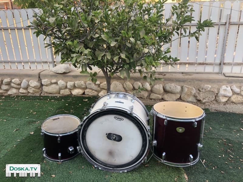 Ударные (3 барабана), состояние удовлетворительное, необходим небольшой ремонт - замена мембраны в среднем барабане и пара мелочей. Для понимающих проблем не представит.