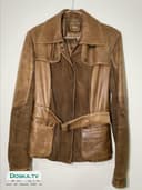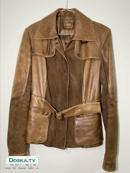 Кожаная куртка коричневого цвета от немецкого производителя Gunmod. Материалы: натуральная кожа и замш, внутри шелковая подкладка. Есть пояс. В хорошем состоянии.Размер S.