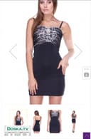 Платье черное декорированное Эффектное платье облегающего силуэта длиной до середины бедра. Модель на тонких бретелях дополнена декором на лифе. Сзади предусмотрена застежка-молния.