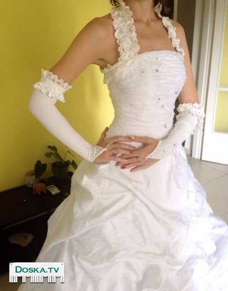 свадебное платье дизайнерского пошива на рост 170. Перчатки в комплекте.