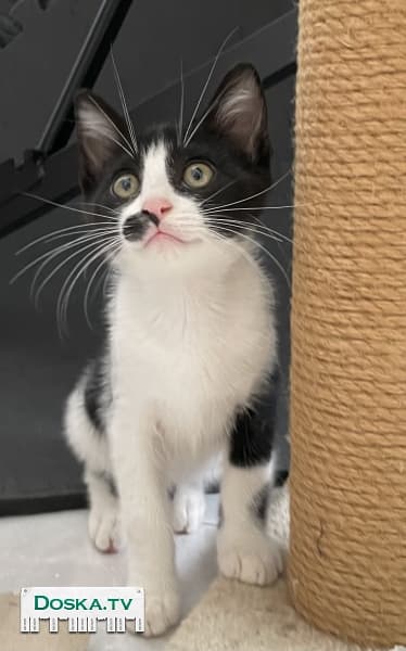 Черно-белая девочка, с черным пятном на носу, почти 2.5 месяца (родилась 1го апреля), готова к переезду. По рекомендации ветеринара обработана от глистов и блох, знает лоток с наполнителем. Активная и общительная игривая, ручная, мурчит, любит когда чешут пузо. Разноцветный подушечки лапок. Безумный взгляд и расцветка в черно-белого папу, мама полностью черная. Территориально центр Нетании.