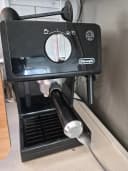 Продаю рожковую кофеварку с давлением помпы 15 бар для приготовления эспрессо и капучино. Функциональность: Оснащена ручным капучинатором (система Cappuccino) для взбивания молока и функцией подачи горячей воды. Конструкция: Имеет съемный резервуар для воды объемом 1,1 литра и профессиональный держатель фильтра (холдер) с алюминиевой отделкой. Совместимость: Подходит для использования как молотого кофе, так и чалд E.S.E. (Easy Serving Espresso). В комплекте очищающий раствор