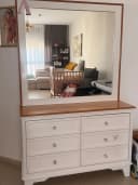 Комод в комплекте с прикроватными тумбами.Все в рабочем состоянии, только есть сколы на углах внизу.