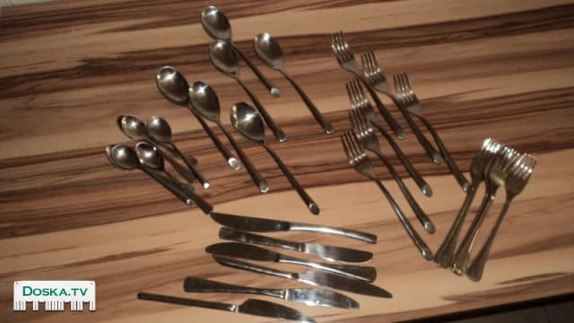 Продаётся комплект " ложки , вилки из тяжёлой нержавеющей стали. Форма предметов привлекательная. Состояние хорошее, без повреждений.