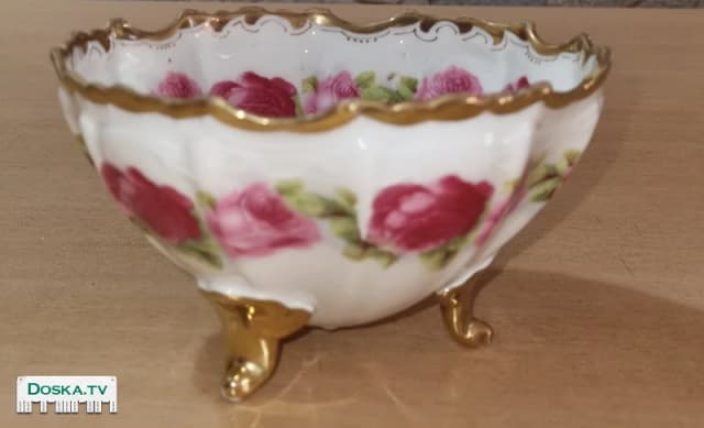 Конфетница фарфоровая, расписанная вручную с позолотой