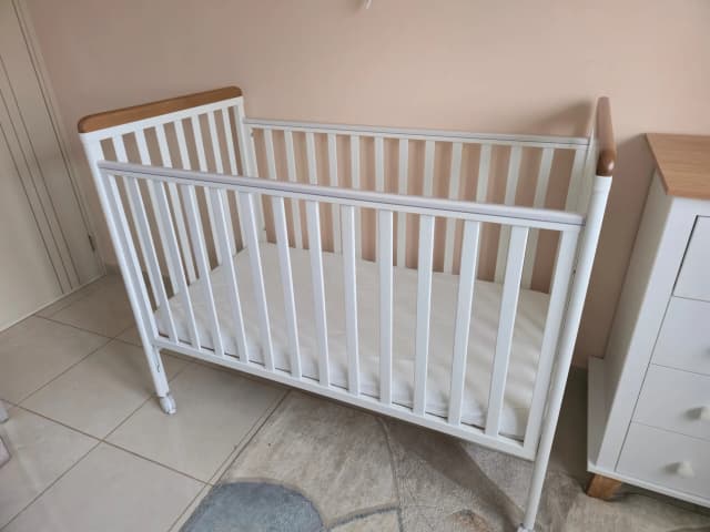 с матрасом. с возможностью регулировать высоту. на колёсиках. если вместе с комодом покупать,то за 900 шэк