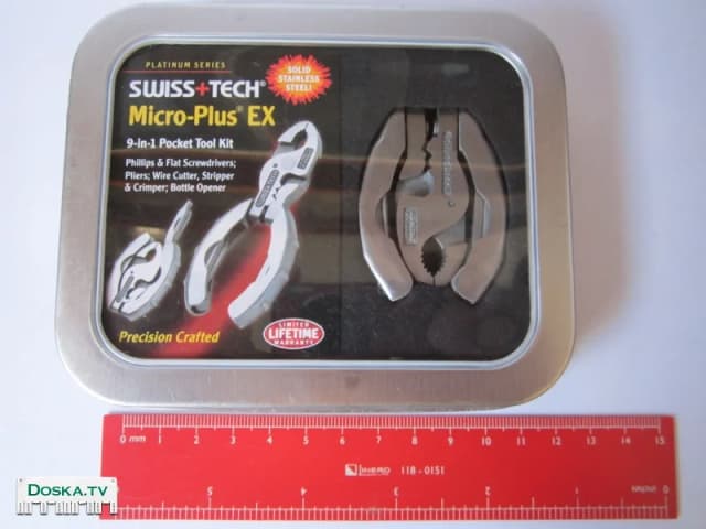 Маленький Мултитул Swiss+Tech Micro plus EX.9 в 1.Оригинальный! Платиновая серия в специальной люкс-упаковке. Подходит также как и брелока для ключей. Привезен с Канады.Сделан в Китае. Состояние-новое. Очень популярен в США и Канаде. Цена-80 шек. Спасибо. Обратите Внимание, Почти все продажи фирмы Swiss+Tech продавцами из Китая и некоторой части продавцов из США -это подделки!