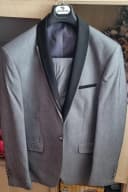 мужской серый костюм : брюки и пиджак в стиле смокинга с контрастным черным шалевым воротником. Бренд: Salvador Dali Модель: KOLLBI Размер: 56 Состав: 65% Полиэстер, 35% Вискоза