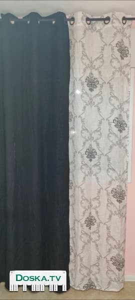 Пара штор с рисунком и пара чёрных. Каждая пара за 100 шек. 240×140 см каждая штора.