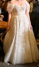 Свадебное платье от Julie Vino Цена: 3500 шекелей Размер: примерно 38 — есть корсет, поэтому подойдёт и для близких размеров Длина: рассчитано на рост около 1,66 м с каблуками, включая длинный шлейф Отделка: сверкающее, с декоративной вышивкой из камней Самовывоз: Хайфа שמלת כלה מושלמת מג'ולי וינו מחיר: 3500 ש"ח מידה: 38 בערך – יש מחוך, כך שמתאימה גם למי שסמוכה במידות אורך: מתאימה לגובה סביבות 1.66 מ' פלוס עקבים, כולל שובל ארוך ומרשים מנצנצת עם עבודת אבנים איסוף: חיפה