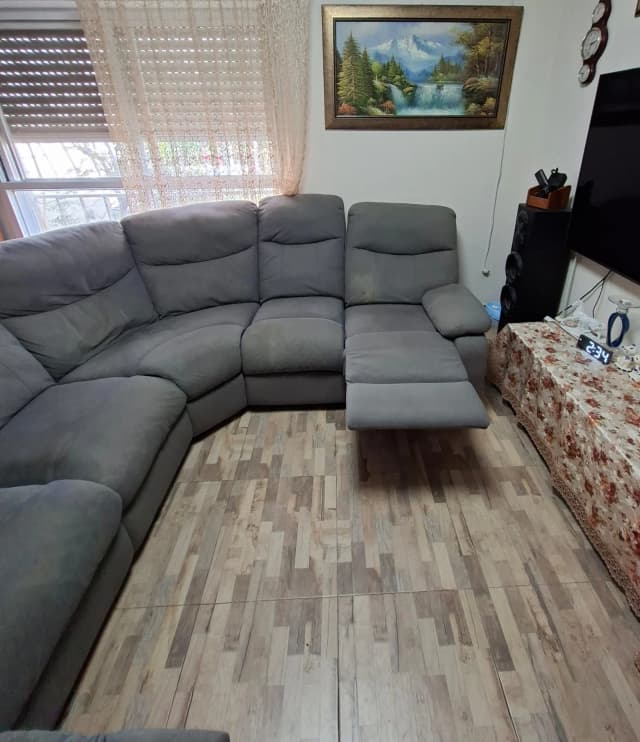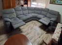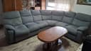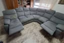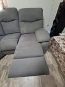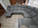 угловой салон приятный цвет, удобный, с раскладывающимися подножками