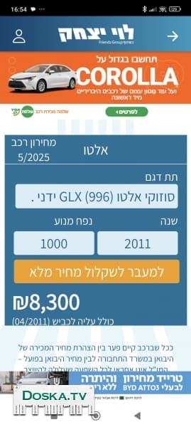 -продаю машину потому что по медицинским причинам у меня забрали права; -без прав я не смог пройти проверку на רישיון רכב ; -гараж сузуки где проводилось техобслуживание - היצירה 37 א.ת. רחובות טל.