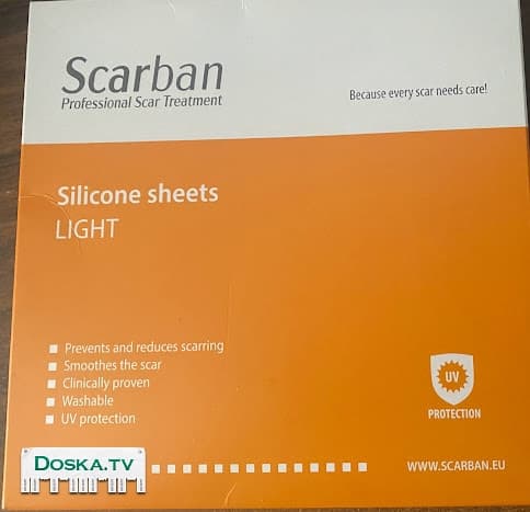 Scarban Light 15x20cm.Медицинские силиконовые повязки с двойной эластичностью, предназначенные для лечения гипертрофических и келоидных рубцов, образовавшихся в результате хирургических операций, ожогов, ран и эстетических процедур. Двойная гибкость повязок разработана для обеспечения максимального комфорта. Повязка Scarban Light предназначена для: хирургического разреза, симметричного разреза, лица, пальцев и для чувствительной кожи.