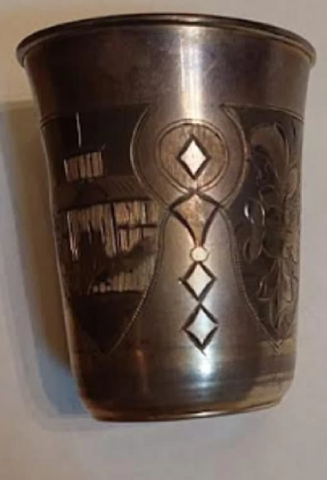 продам очень красивую серебряную стопку,киевское клеймо ИЕЗ 1886 г., 84-я проба,вес 35 г, цена-900 шекелей.