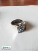 Серебряное кольцо 925 пробы инкрустированное золотой пластинкой 9К и с маленьким цирконием синего цвета. 14К. Размер 7.