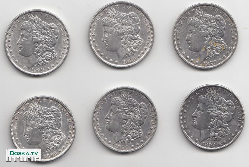 Продам серебряные доллары морган-6 штук. хорошее коллекционное состояние. цена-350 шекелей за одну монету.